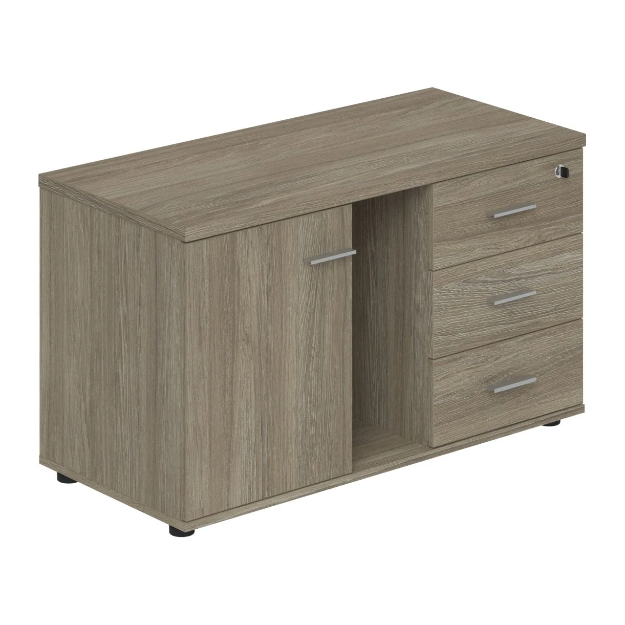 Тумба опорная (мобильная) с 3-мя ящиками + замок, распашным фасадом и нишей, правая Винг / Wing Дуб темный